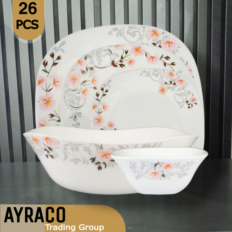 سرویس آرکوپال ۲۶ پارچه قالب مربع برند مقصود مدل لی لا صورتی | شفاف، بادوام و ایدهآل مهمانی