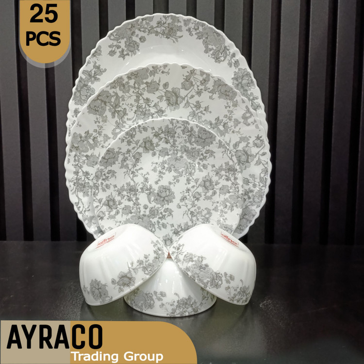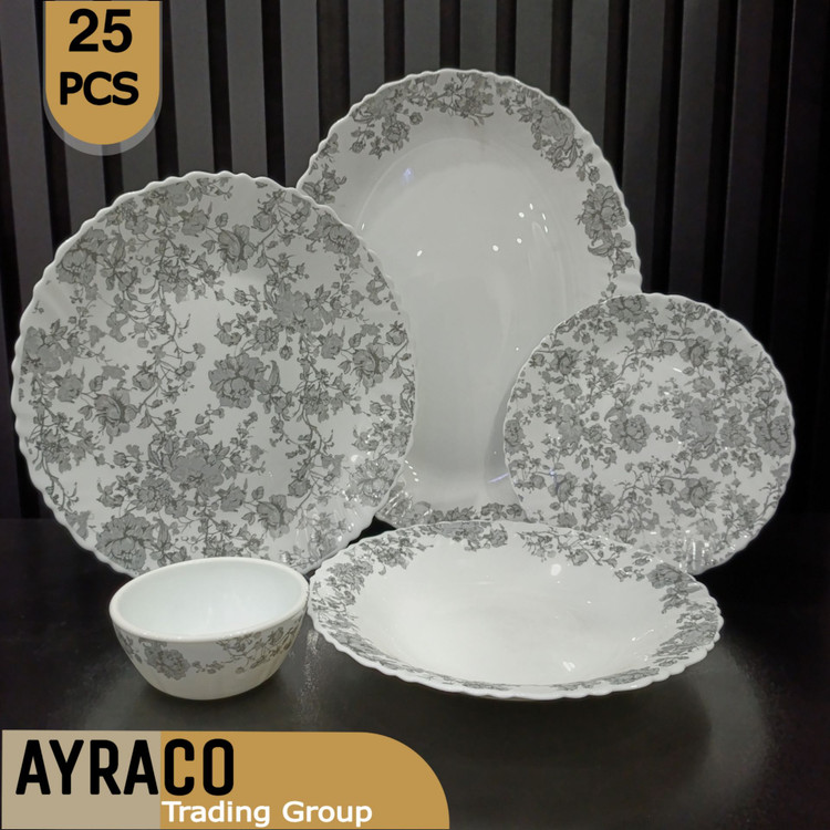 ۲۵ پارچه ۶ عدد بشقاب پلوخوری، ۶ عدد خورشتخوری، ۶ عدد پیشدستی، ۶ عدد پیاله ماست/ترشی، ۱ عدد دیس بزرگ