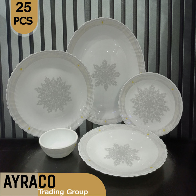 ۲۵ پارچه ۶ عدد بشقاب پلوخوری، ۶ عدد خورشتخوری، ۶ عدد پیشدستی، ۶ عدد پیاله ماست/ترشی، ۱ عدد دیس بزرگ