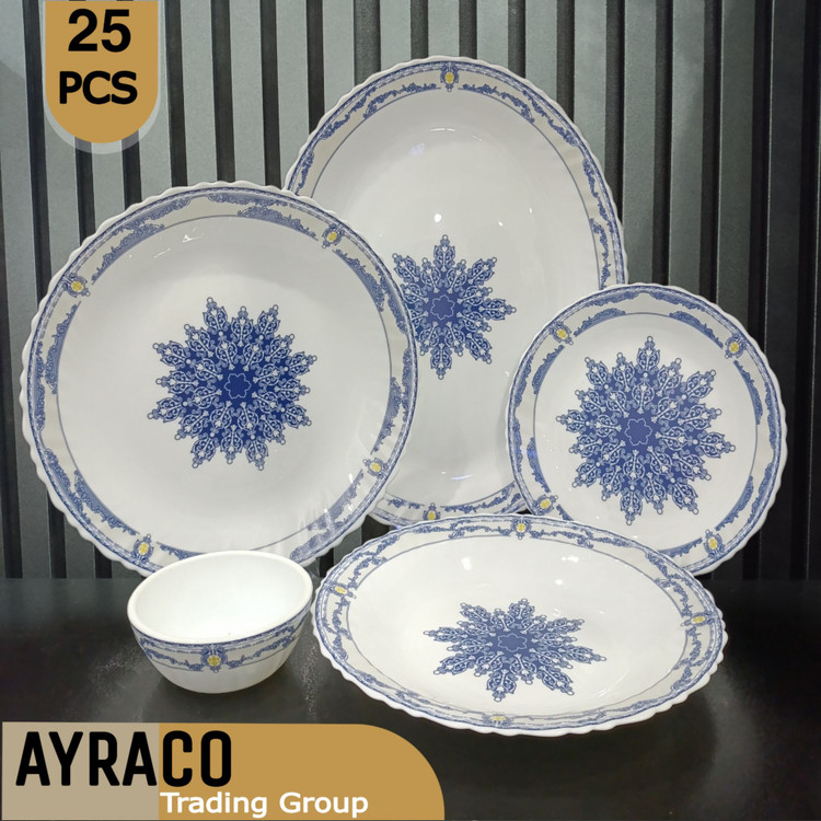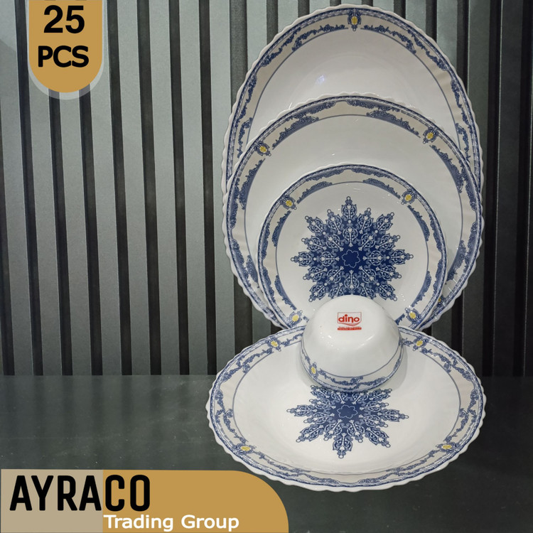 ۲۵ پارچه ۶ عدد بشقاب پلوخوری، ۶ عدد خورشتخوری، ۶ عدد پیشدستی، ۶ عدد پیاله ماست/ترشی، ۱ عدد دیس بزرگ