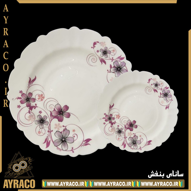 سرویس آرکوپال ۲۵ پارچه قالب کنگرهای برند مقصود | طرح سانای بنفش