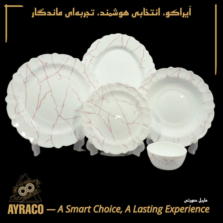 سرویس آرکوپال ۲۵ پارچه قالب کنگرهای برند مقصود | طرح ماربل صورتی