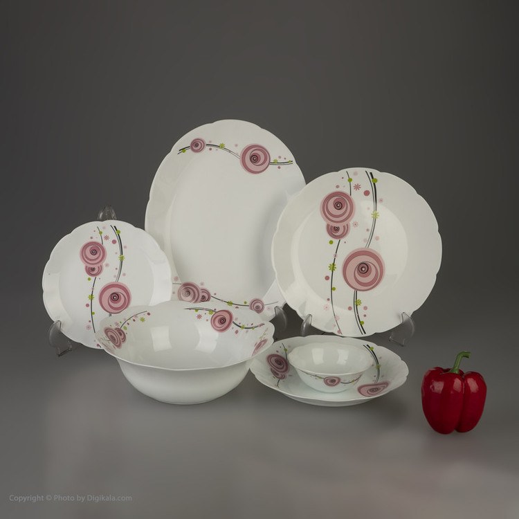 ۲۵ پارچه ۶ عدد بشقاب پلوخوری، ۶ عدد خورشتخوری، ۶ عدد پیشدستی، ۶ عدد پیاله ماست/ترشی، ۱ عدد دیس بزرگ