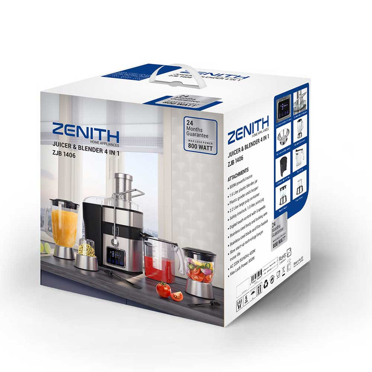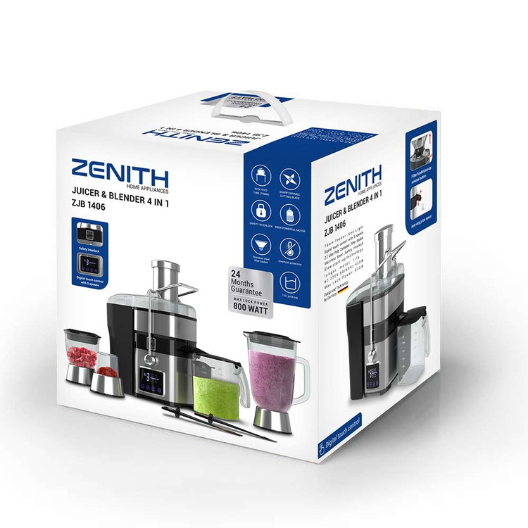 آبمیوهگیری چهارکاره زنیت ZJB-1406 در میان محصولات مشابه زنیت، تعادل بسیار خوبی بین قدرت موتور، ظرفیتها و امکانات چندمنظوره ایجاد کرده است.
