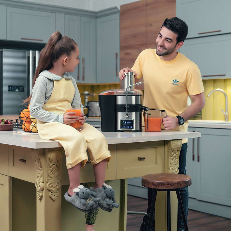 ویژگیهایی مانند تیغه فولادی ضد زنگ، بازوی قفل ایمن، ظرف تفاله بزرگ و لوله تغذیه عریض، این دستگاه را نسبت به مدلهای تککاره یا دوکاره کاربردیتر و راحتتر کرده است. سیستم کنترل دیجیتال با ۵ سرعت، امکان تنظیم دقیق برای انواع مواد غذایی را فراهم میکند و بدنه استیل مقاوم دوام و زیبایی دستگاه را تضمین میکند.
