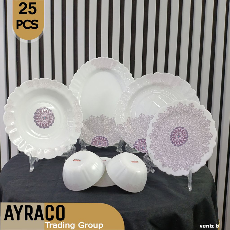 سرویس ۲۵ پارچه قالب کنگره | ۶ نفره | طرح ونیز بنفش