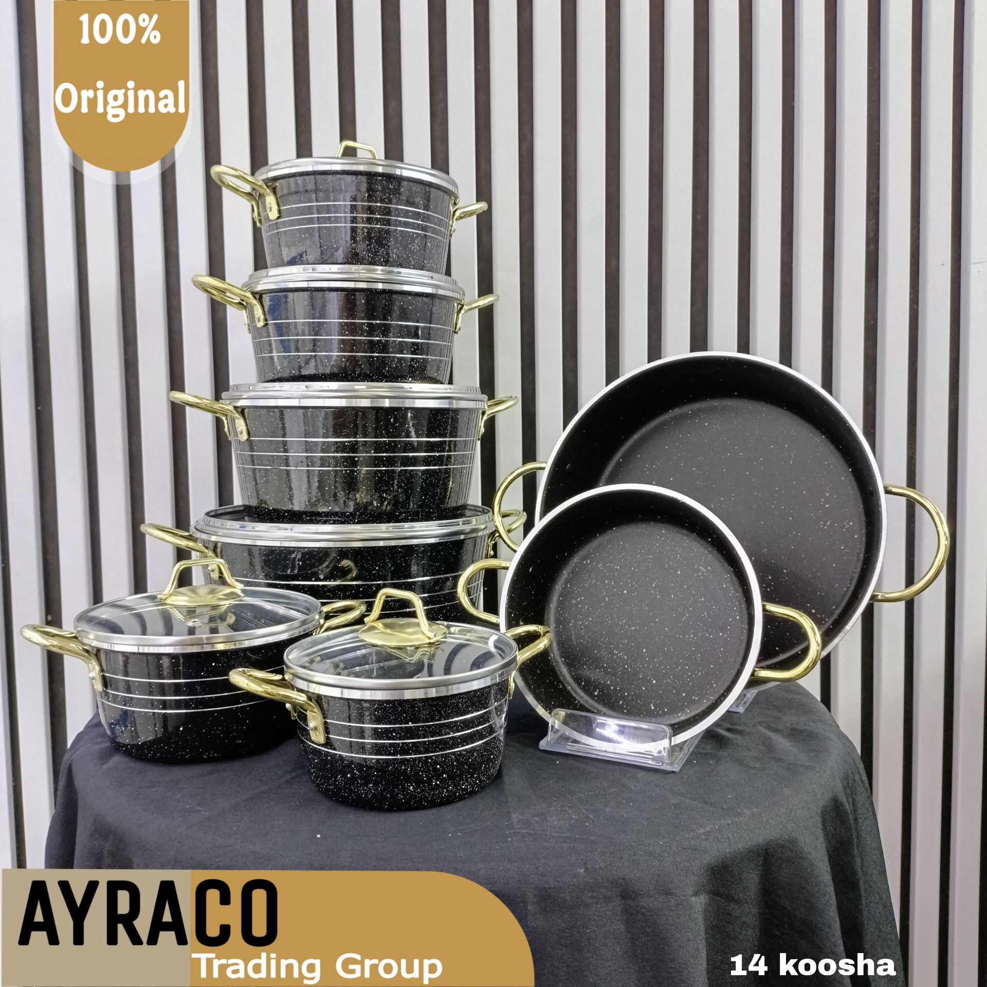 سرویس قابلمه ۱۴ پارچه گرانیتی طرح شمیم – برند کوشا مشکی