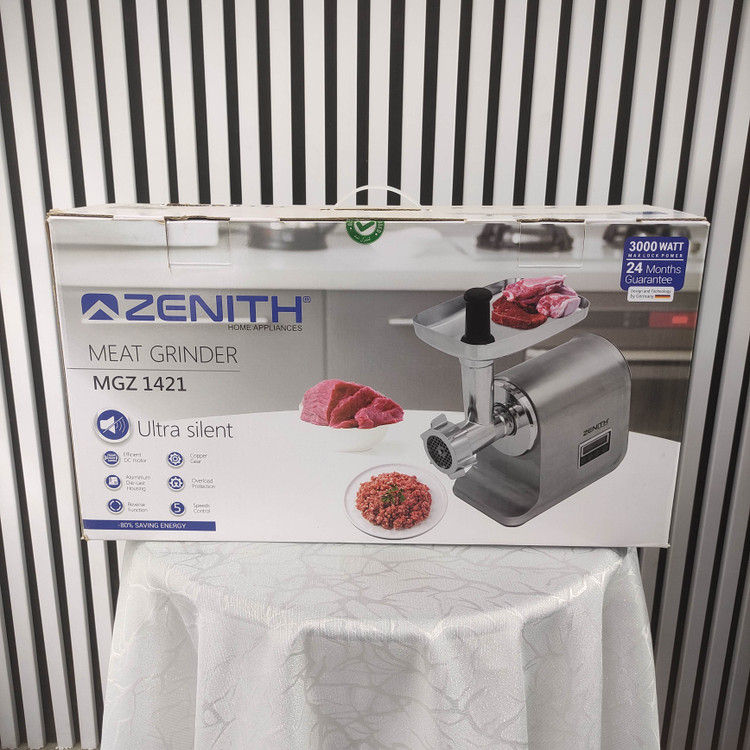 چرخ گوشت زنیت مدل MGZ-1421 یکی از حرفهایترین و قدرتمندترین مدلهای تولید شده توسط برند معتبر زنیت (Zenith) است. این دستگاه با توان واقعی 3000 وات، موتور DC فوقالعاده پرقدرت و فناوری گیربکس هیدرولیک، برای مصارف خانگی پیشرفته و حتی استفادههای نیمهصنعتی طراحی شده است.