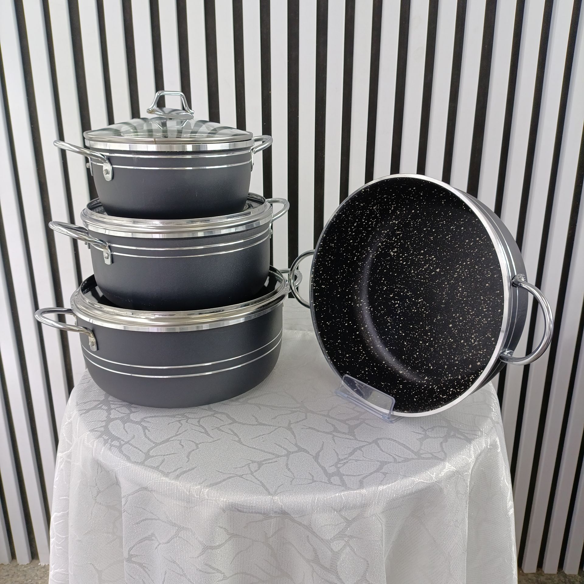 سرویس ۷ پارچه قابلمه اپیروس مشکی گرانیتی – مجموعه کاربردی و بادوام پختوپز روزانه