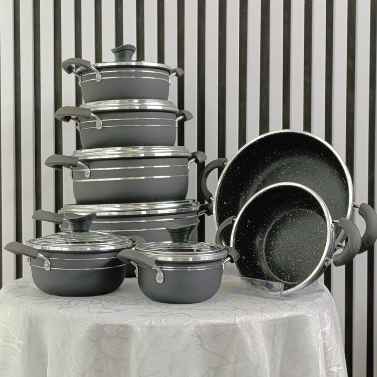 هر قابلمه در این مجموعه از مواد اولیه مرغوب و پوشش نچسب استاندارد ساخته شده که امکان پخت انواع غذاها را بدون چسبندگی و با حداقل روغن فراهم میکند. دربهای شیشهای مقاوم با قاب فلزی، دید کامل از داخل قابلمه را ممکن ساخته و شما را از باز کردن مکرر بینیاز میکند. دستگیرههای ارگونومیک با پوشش ضدگرما، ایمنی و راحتی را در هنگام جابجایی ظروف تضمین میکنند.