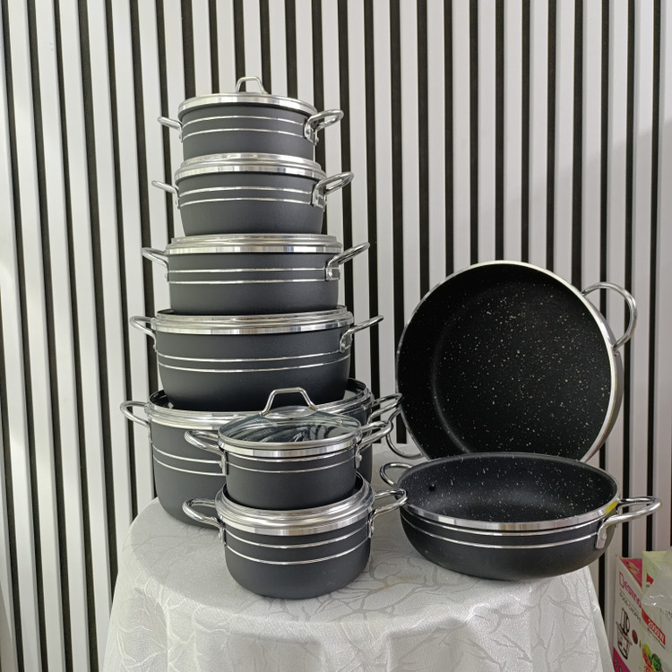 سرویس قابلمه 16 پارچه اپیروس (مشکی) - 7 قابلمه + 2 تابه